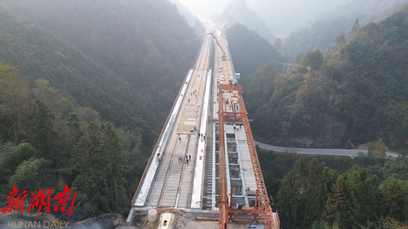 近日,张家界至官庄高速公路(高速集团段)关键性控制工程蛇儿沟特大桥、大湾沟钢混组合梁桥先后完成梁板架设,张官高速公路(高速集团段)全线基本实现全幅贯通。