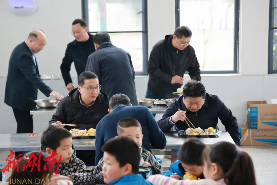 在益阳市实验小学为民校区,付振南一行进入校园食堂,查看了当天菜谱,进入厨房检查卫生条件与食材新鲜程度,并与同学们一起共进午餐,亲身体验学校餐食质量。付振南强调,学校要始终把学生安全健康放在首位,以最严谨的标准、最严格的监管,用心守护学生“盘中餐”,确保孩子们健康成长。