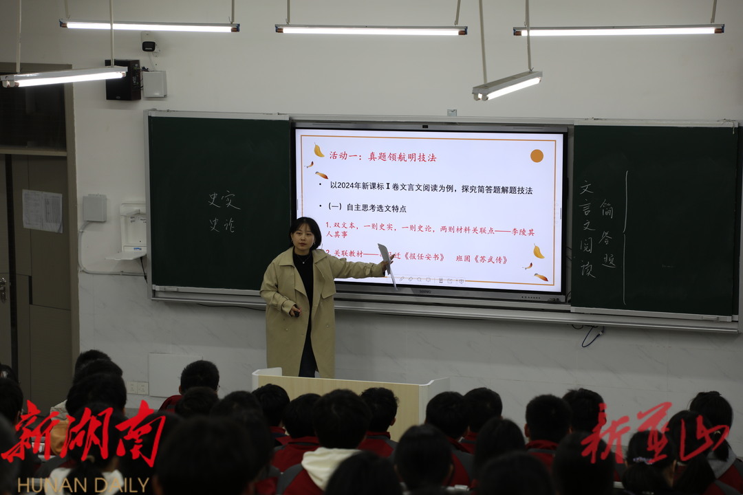 在县二中,学校高三老师分别带来了精彩的语文和化学示范课。课堂上,高三老师以高考阅读理解题目为主题,为同学和老师们精心讲述了阅读理解在各个语言学视角下的解题策略,整堂课系统有条例,思路缜密,学生表现活跃,听课教师收获甚多。