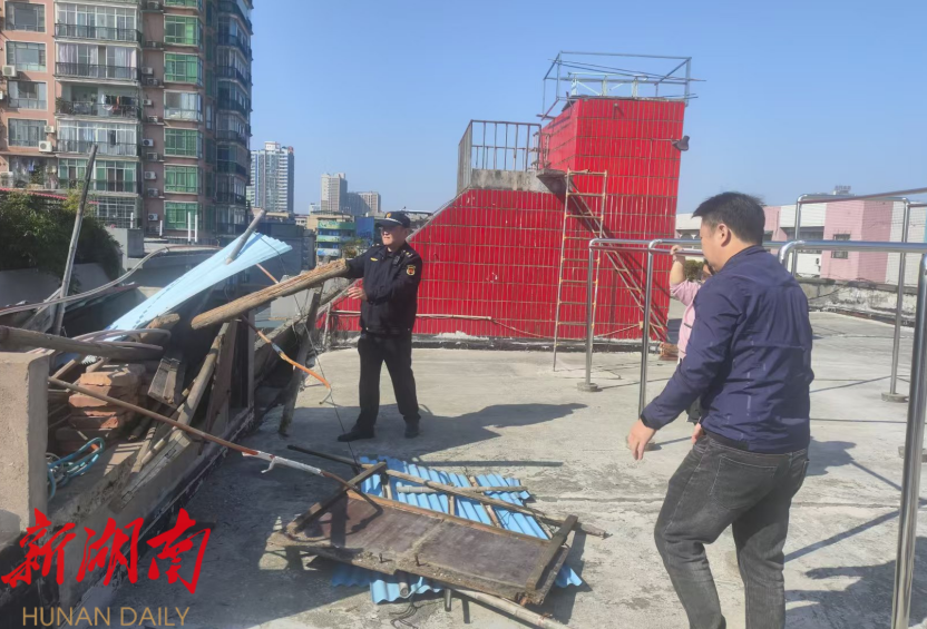 为切实保障城市安全,提升辖区城市形象,从今年4月份开始,人民街道城管大队联合街道职能部门、社区对辖区屋顶棚架开展安全隐患集中排查整治行动。