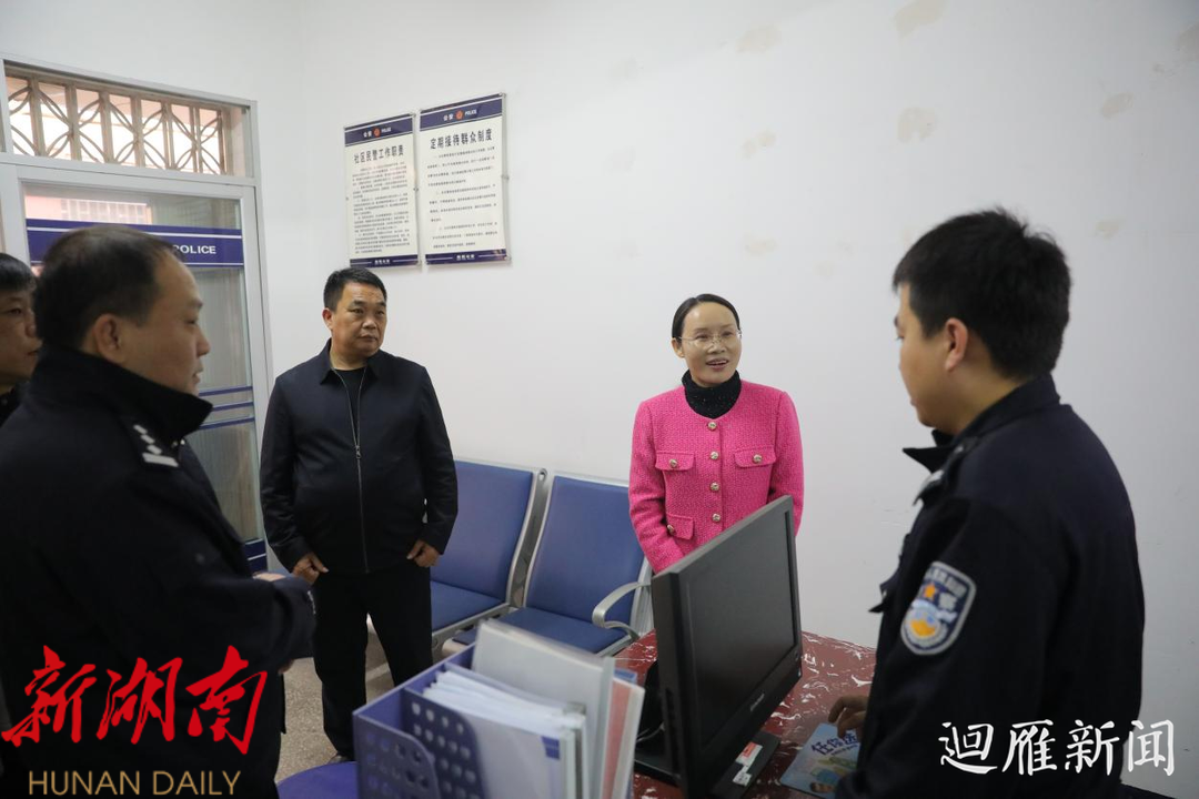 王燕还来到岳屏社区警务室,详细询问该警务室人员配备、值班值守情况。她强调,要做实基层基础工作,认真梳理分析辖区警情、民情,科学合理配置警务资源,严格落实人防、物防、技防“三防联保”安全措施,努力实现警情、诉情、访情“三情联处”,要强化重点部位重点场所防控,严密重大活动管理,着力筑牢治安管控防线,严防发生极端案件和重特大安全事故。