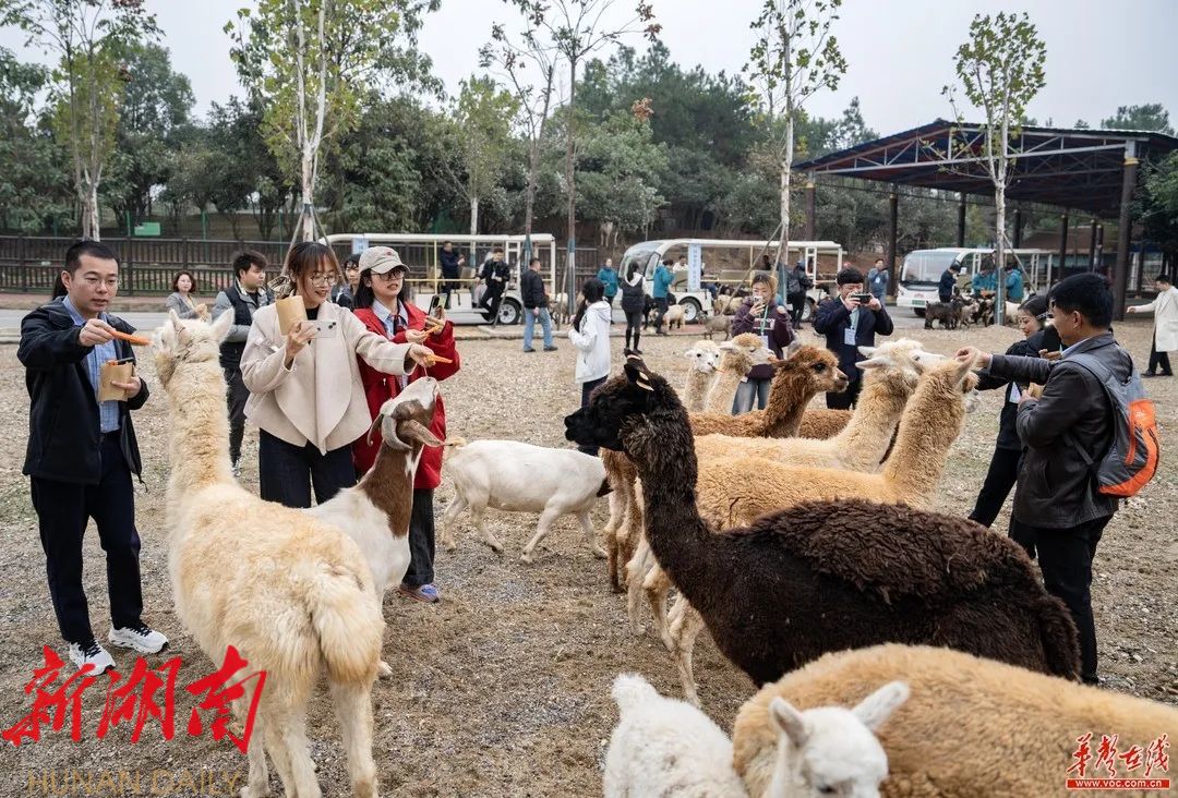 “我们准备了蔬菜和胡萝卜,邀请各位媒体老师亲手投喂山羊和羊驼。”车行至大食草区,随车讲解员的邀约瞬间点燃了现场的气氛,大家纷纷下车,手拿一小袋胡萝卜,体验这难得的和动物亲近的机会。