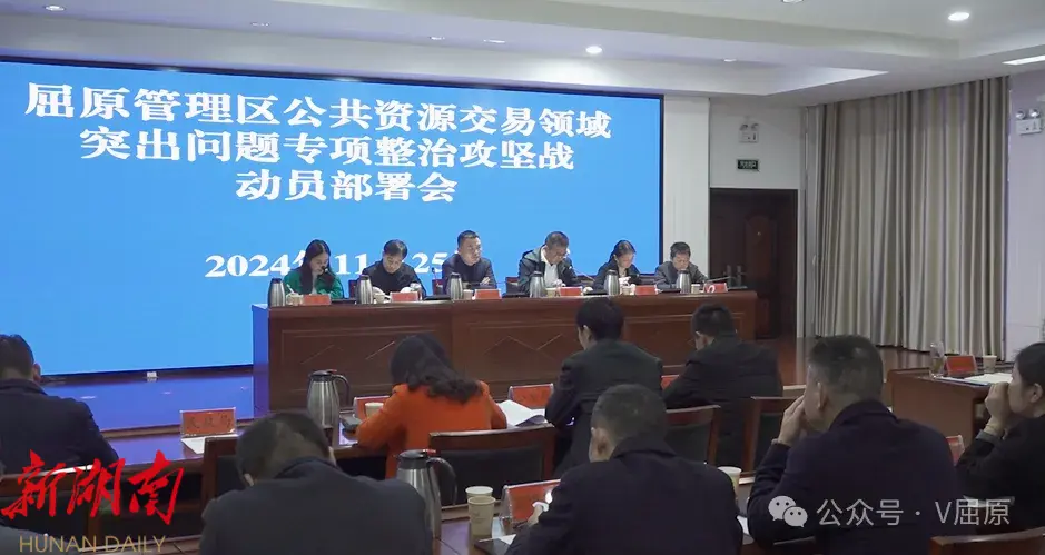 湖南日报·新湖南客户端11月26日讯(通讯员 周家希)11月25日,屈原管理区召开全区公共资源交易领域突出问题专项整治攻坚战动员部署会。区党委委员、管委会常务副主任湛江主持会议,区党委委员、纪委书记、监工委主任 李立出席会议,区纪委、区发改局、区住建局、区财政局等相关单位主要负责人及乡镇(街道)主要负责人参加会议。