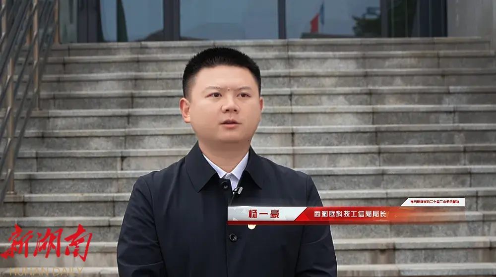 区科技工信局局长 杨一豪: 党的二十届三中全会对进一步全面深化改革做出了系统部署,提出高质量发展是全面建设社会主义现代化国家的首要任务,接下来区科工局将深入学习贯彻党的二十届三中全会精神,牢牢把握高质量发展主基调,重点抓好产业集群、科技成果、开放能级、区域协调、营商环境等重点工作,为推进和美西洞庭建设贡献工信力量。