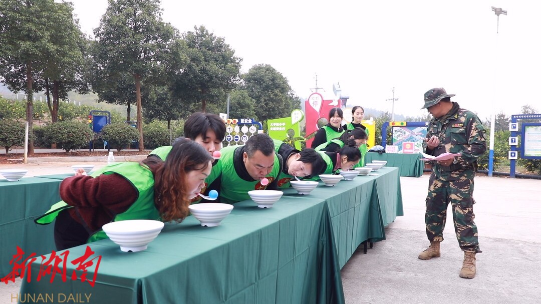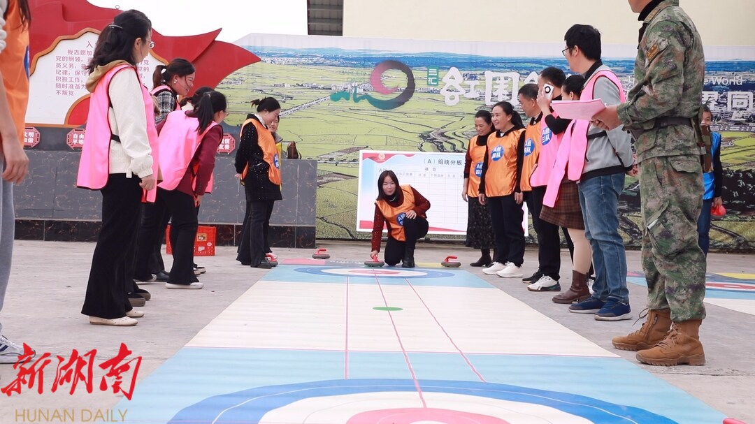 在随后开展的趣味运动会中,所有队员被分为A、B两队,分别完成不同的项目。此次比赛共设有知识竞答、冰壶、摸石头过河、投壶、小鸡啄米、移花接木等9个项目。各项目比赛精彩纷呈。在冰壶比赛中,选手们聚精会神,压低身体、单膝跪地、手握冰壶……伴随着“啪”的清脆声响起,一场充满趣味与挑战的精彩较量随即展开。在摸石头过河比赛中,队友们需要手脚并用,巧妙地利用道具“石头”在规定的赛道上前行。投壶区域则是欢声笑语的海洋,选手们站在规定的距离外,将手中的箭矢投向壶中。现场气氛紧张而又热烈,每一次箭矢入壶都赢得观众们的欢呼喝彩。