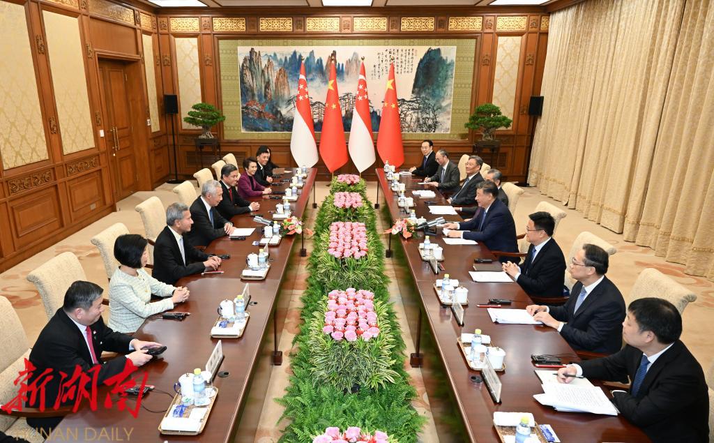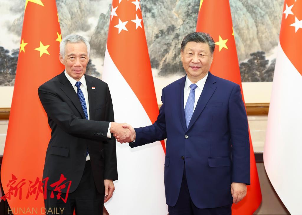 习近平积极评价李显龙担任新加坡总理期间带领新加坡取得显著成就,并长期关心和支持中新合作。习近平指出,去年我们共同确立了中新全方位高质量的前瞻性伙伴关系,为两国关系发展明确了战略方向。明年是中新建交35周年,双方要密切高层往来,进一步加强发展战略对接,深化各领域合作,为两国人民带来更多福祉,为地区和平繁荣作出更大贡献。