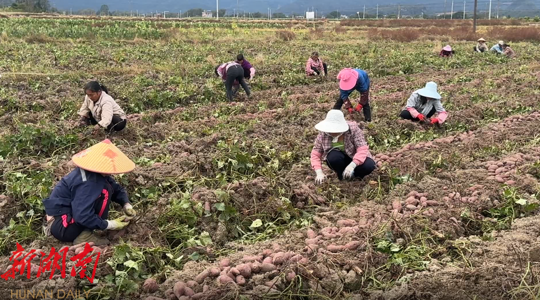 新江永客户端讯(记者 谢文彬 陈平成 ) 秋种一株苗,春收万斤薯。眼下,正是紫薯收获上市的时节。连日来,在江永县潇浦镇的紫薯种植基地里,村民们正抢抓晴好天气收获紫薯。