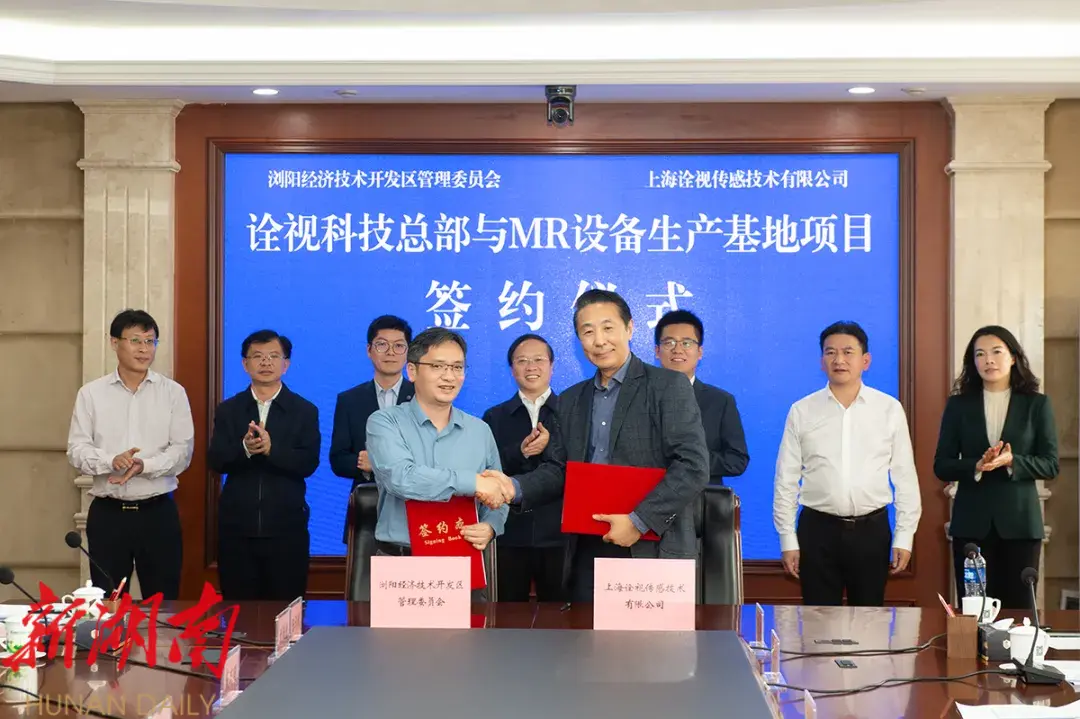 11月14日,诠视科技总部与MR设备生产基地项目签约活动在浏阳经开区举行,标志着总投资达5亿元的新项目落户园区,将为浏阳电子信息产业注入新活力、积蓄新动能。