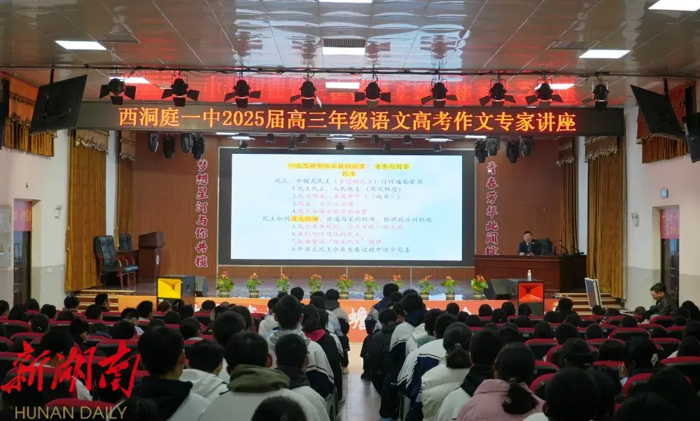 为帮助学生掌握高考作文的写作技巧,提升写作水平,为高考打好基础战,11月26日,2025届高三年级语文高考作文专家讲座在西洞庭一中大礼堂举行。