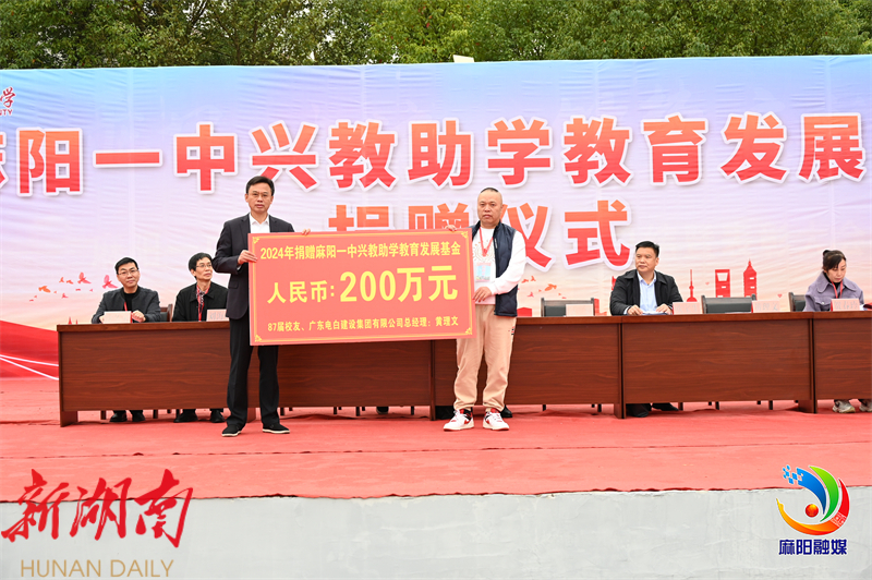 11月27日,麻阳苗族自治县第一中学举行兴教助学教育发展基金捐赠仪式,来自社会各界的麻阳一中校友共向母校捐资400万元,用于母校助学与教育发展。县委副书记、县委统战部部长李彬,副县长向翼参加了当天的捐赠活动。