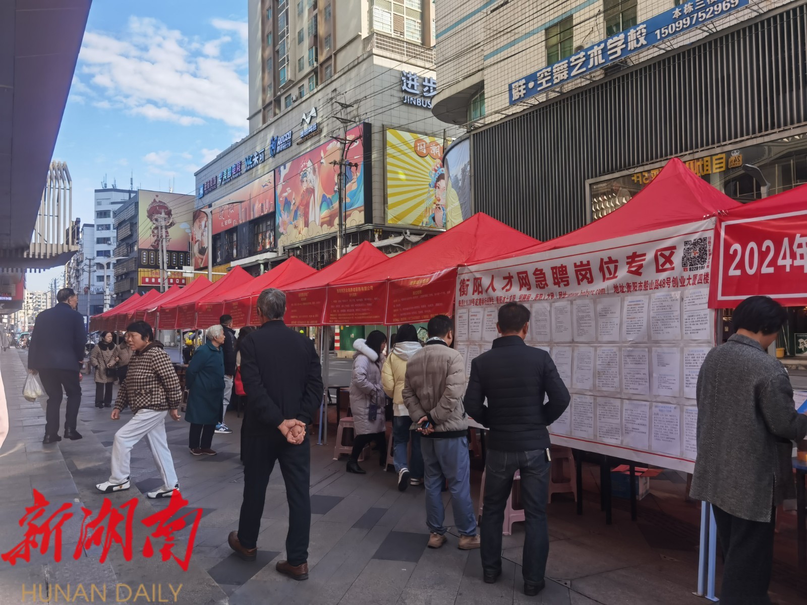 11月27日上午,蒸阳社区在旺角星辰前坪开展金秋招聘会暨医保政策宣传活动。