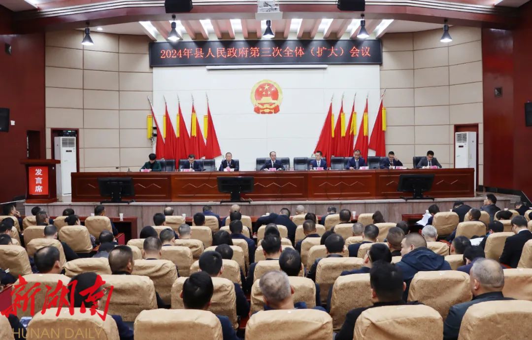 新新邵客户端11月27日讯 11月27日上午,县人民政府召开2024年第三次全体(扩大)会议。县委副书记、县长谢小军强调,要深入贯彻党的二十届三中全会精神,全力推动省委十二届七次全会、省政府第五次全会和市委十二届八次全会、市政府第五次全会以及县委十三届八次全会工作部署落实落地,紧盯目标,强化举措,全力冲刺,千方百计完成全年经济社会发展目标任务。