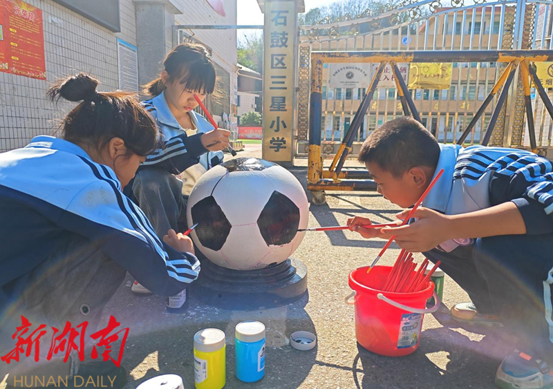 近日,石鼓区三星小学校门口的四个彩绘“足球”防撞墩意外走红,成为了一处小有名气的打卡点。无论是路过的行人还是接送孩子的家长,都会忍不住停下脚步,围观并拍照留念。