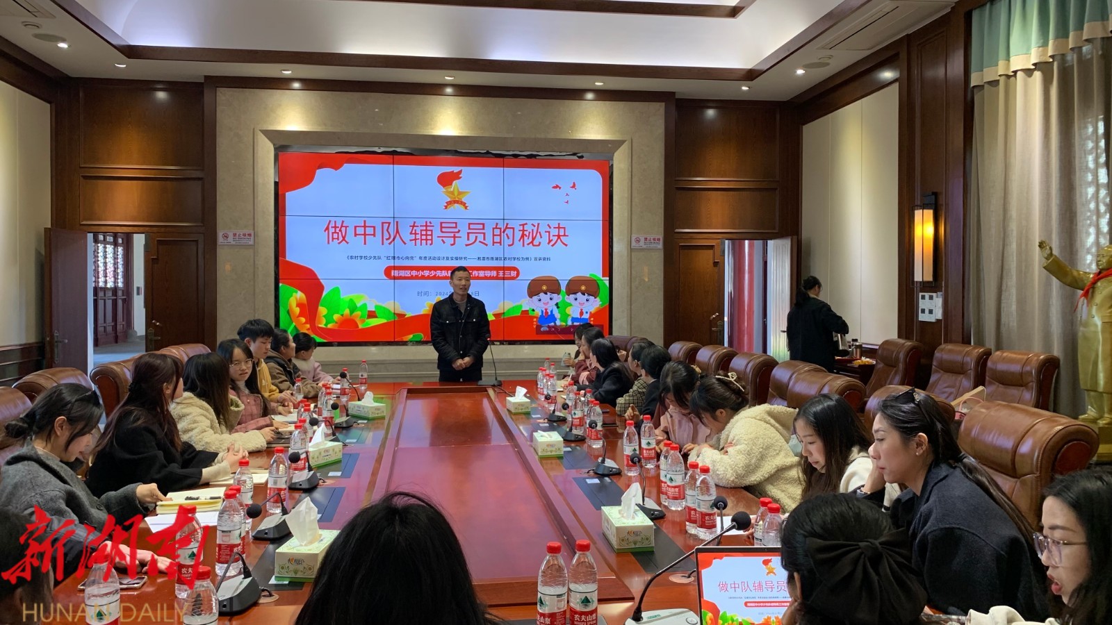 据了解,湘锰小学是雨湖区规模最大的农村学校,为做好本次培训,名师工作室精心准备少先队中队创建的内容。工作室导师王三财以“做中队辅导员的秘诀”为题,以自身带领中队创建星级集体过程为范本,向农村学校的辅导员们展示了如何设计富有创意、贴近队员实际的少先队活动,如何有效激发队员的参与热情,培养他们的团队合作精神和创新能力。同时,他还分享了在中队实施红领巾奖章的实例,深入解读了新时代少先队工作的新要求和新使命,强调了辅导员在少先队工作中的重要作用。