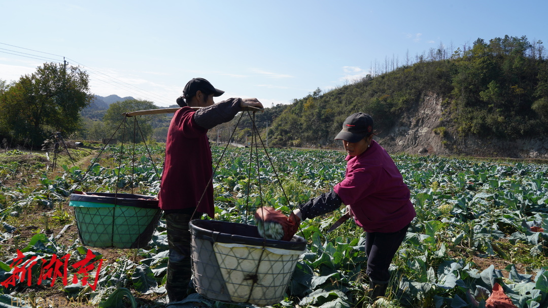 中方融媒11月29日讯 11月28日,记者在中方县铜湾镇黄溪村蔬菜种植基地里看见,有机花菜和西兰花正迎来采收期,田间地头充斥着菜农们忙碌的身影,采收、搬运、装车,一朵朵花菜成为助农增收的“致富花”。