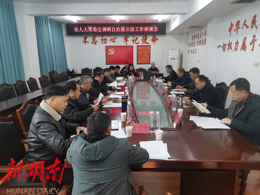 新城步客户端11月29日讯 (记者 毛学军)11月28日下午,邵阳市人大常委会副主任毛学雄一行到城步,就《城步苗族自治县自治条例》修订及《城步苗族自治县油茶传承和保护条例》立法工作开展调研,并召开座谈会。县人大常委会党组成员、副主任肖辉凤、唐炎以及吉首大学法学专家团队等陪同调研或参加座谈会。