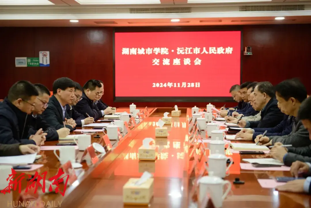 在随后召开的座谈会上,罗必胜代表沅江市委、市政府向湖南城市学院一行的到来表示热烈欢迎,并详细介绍了沅江市经济社会发展情况、历史文化底蕴、未来发展规划以及人才政策。他指出,沅江市地处洞庭湖腹地,自然环境优美,区域位置优越,产业基础厚实,砂石、芦苇、风、光、水等资源丰富,人才辈出,发展态势十分强劲。