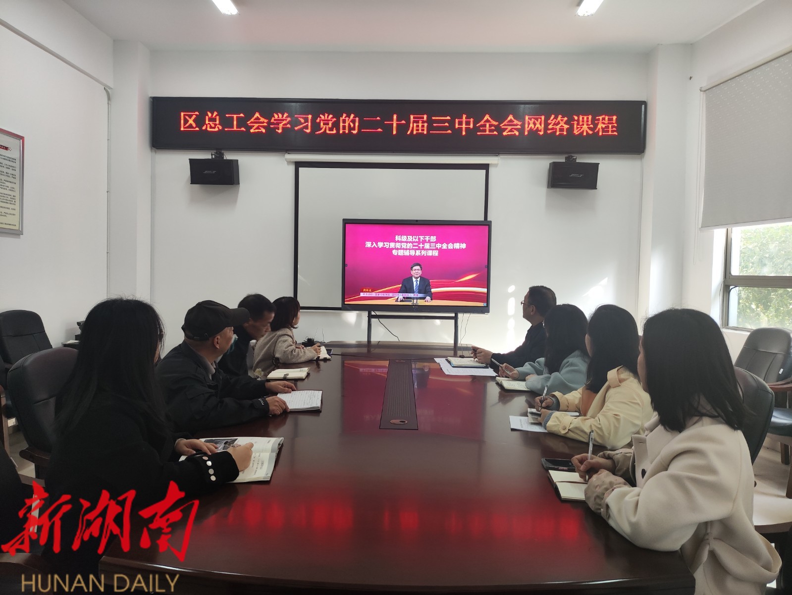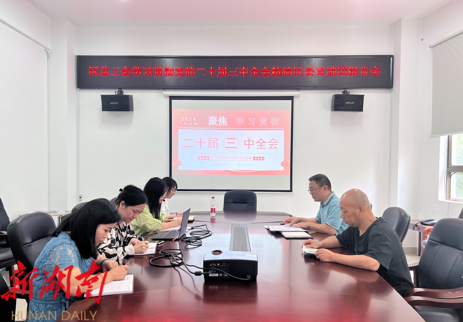党的二十届三中全会是在以中国式现代化全面推进强国建设、民族复兴伟业的关键时期召开的一次十分重要的会议。区总工会严格落实第一议题制度,依托主席办公会、党支部“三会一课”、主题党日等载体,通过交流研讨、宣讲阐释、集中培训等方式,反复研读、深刻领会党的二十届三中全会精神,立足岗位职责和工作实际抓实学习讨论,在全单位上下形成浓厚学习氛围,引导大家提高认识,切实把全会精神落实到具体工作中,体现在实际行动上。