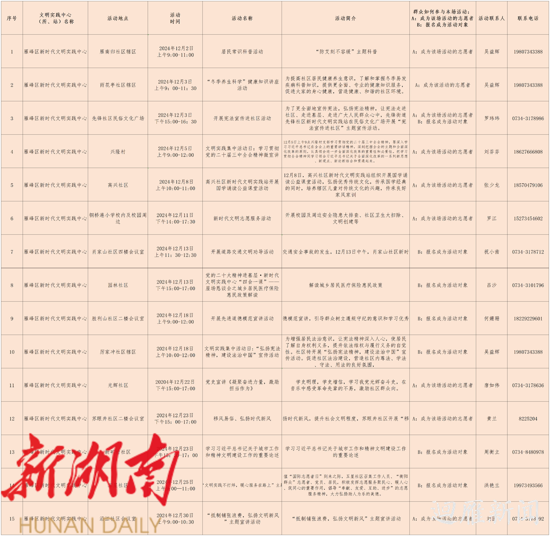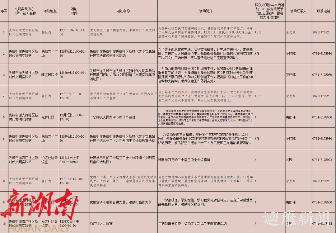 12月新时代文明实践活动来了!@雁峰人 千万别错过