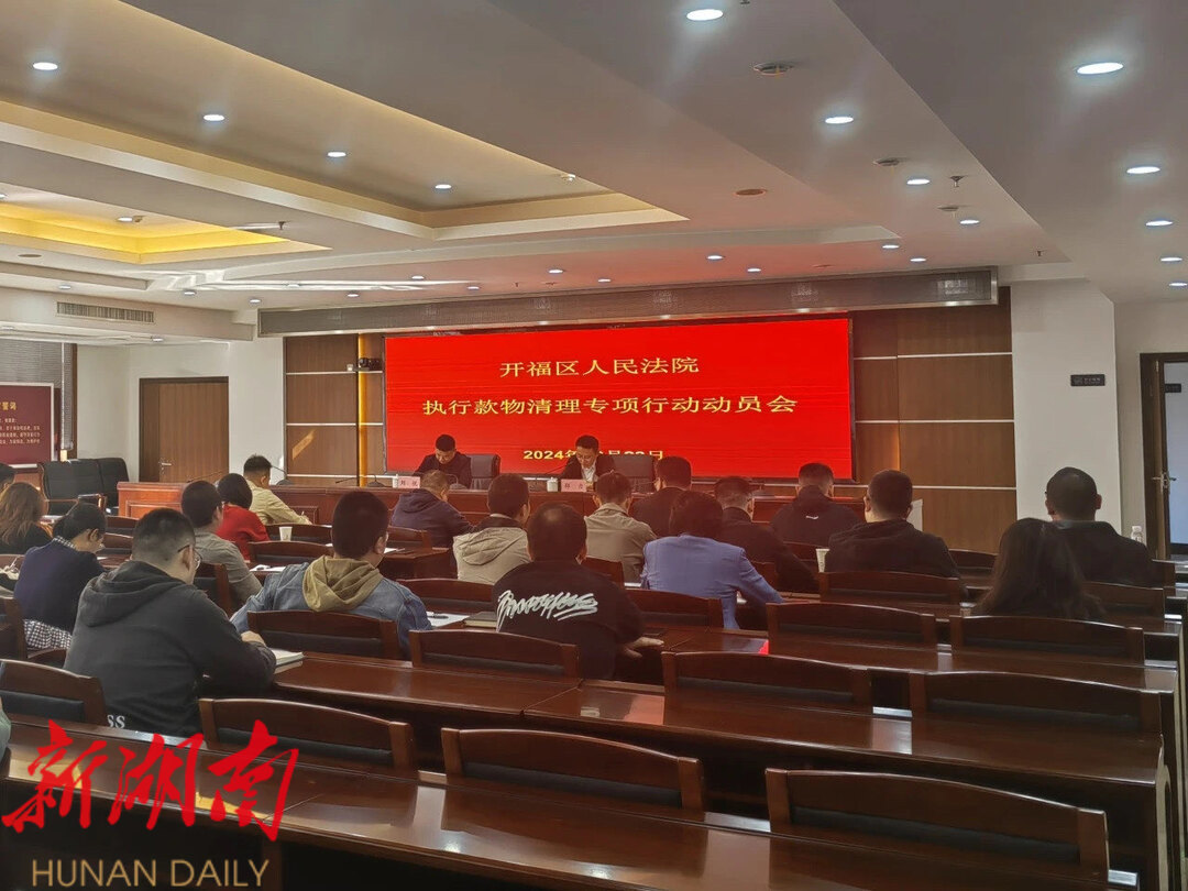 ▲开福区人民法院召开执行款物清理专项行动动员会。