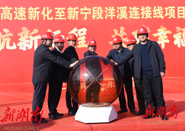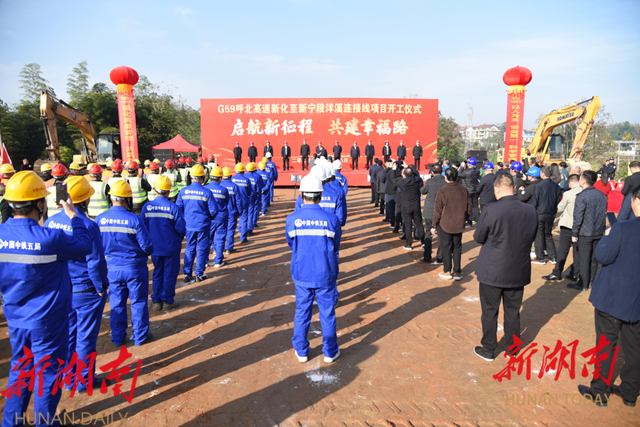 湖南日报·新湖南客户端11月29日讯(通讯员邹畅宁 刘文)11月28日,G59呼北高速新化至新宁段洋溪连接线项目开工仪式在科头乡举行。新化县委书记李铁雄宣布项目正式开工,中铁五局一公司总经理谢晓波、副总经理兼中南片区指挥长李享松出席,县委副书记、县长彭韬主持开工仪式,县人大常委会主任杨韶红,市交通运输局副局长彭达出席。
