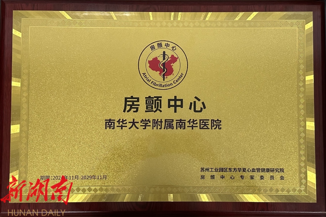 衡东融媒11月30日讯(通讯员 黄江伟)近日,南华大学附属南华医院迎来喜讯,该院房颤中心成功通过“中国房颤中心”再认证,并于11月16日在第十五届扬子江心脏论坛上正式接受“房颤中心再认证”的授牌。这一殊荣标志着南华医院在房颤诊治领域的专业能力和服务质量再次获得了国家层面的高度认可。