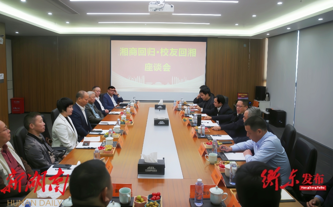 在随后召开的“湘商回归・校友回湘”座谈会上,衡东籍企业家、校友代表齐聚一堂,畅所欲言。蒋崇华诚挚送上一张衡东发展 “成绩单”,热情介绍家乡近年在营商环境优化、产业园区建设、社会经济发展等方面的突破性进展,并抛出 “湘商回归·校友回湘” 的橄榄枝。