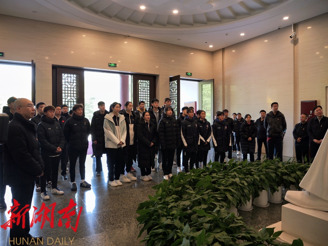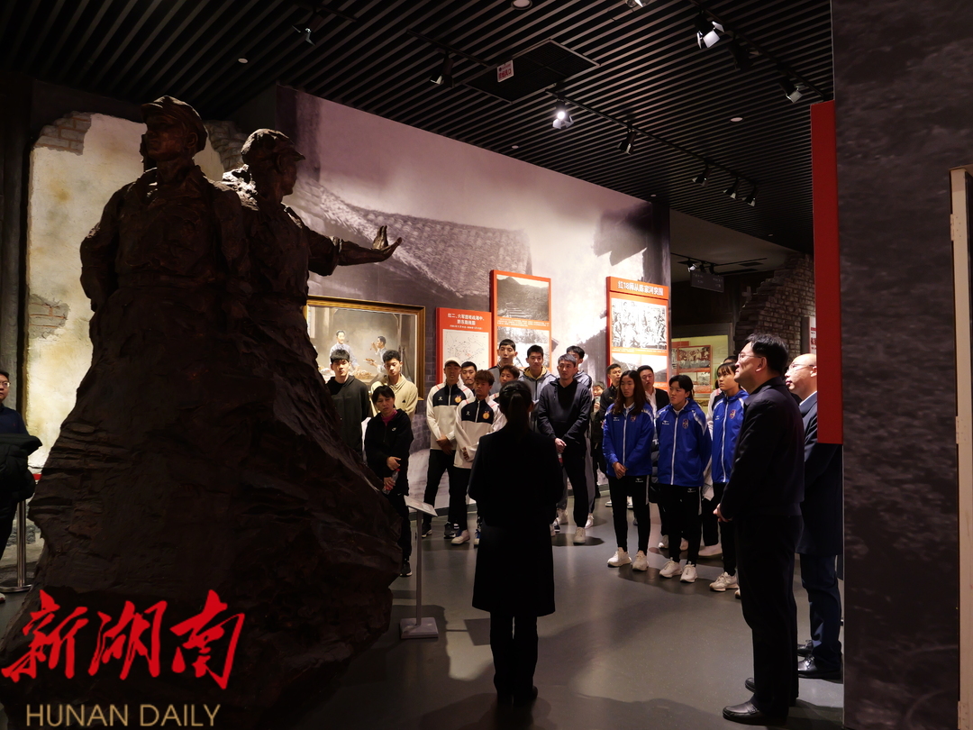 “贺龙元帅是新中国体育事业奠基人,他期望足球、篮球和排球尽快赶上世界先进水平。 ”纪念馆内,运动员们跟随讲解员的讲述,认真聆听贺龙元帅和革命先烈的英勇事迹和光辉历史,了解到展厅内关于贺龙元帅“新中国体育事业的奠基人”部分的事迹时,贺龙元帅的民族体育精神引发了运动员们的深深共鸣。