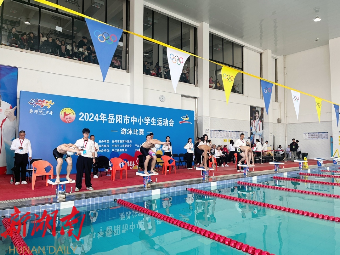 当天,游泳比赛在平江县第二中学游泳馆举行。本次比赛共吸引了来自全市、区县学校的近140名运动员参加。大赛设置高中组、初中组、小学组(甲、乙组),共设56个小项。近年来,岳阳市教育体育局通过练赛结合“搭好竞技台”,为青少年游泳爱好者搭建展示体育技