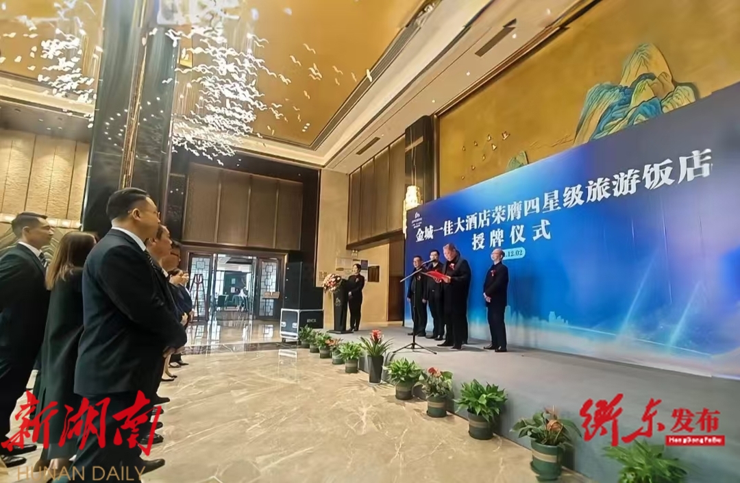 衡东融媒12月2日讯(融媒体记者 边冬宇)12月2日,金城一佳大酒店荣膺四星级旅游饭店授牌仪式举行,标志着酒店正式迈入四星级酒店行列,迈向全新发展阶段,同时也标志着衡东县文旅产业发展再上新的台阶。