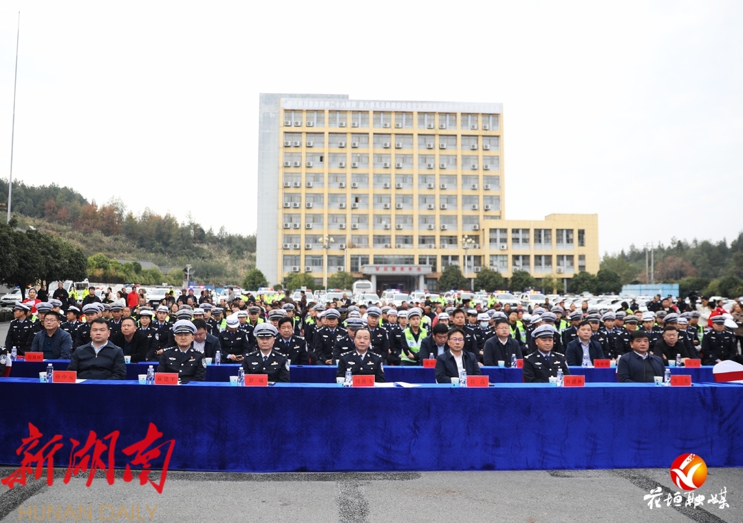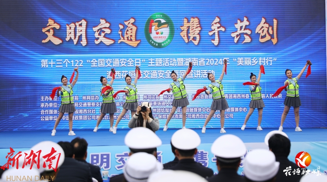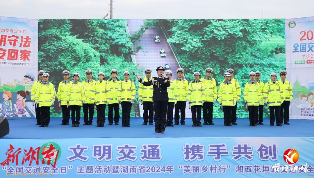 “文明交通,携手共创。”12月2日,湘西土家族苗族自治州第十三个122“全国交通安全日”主题活动暨湖南省2024年“美丽乡村行”湘西花垣站交通安全巡回宣讲活动正式启动。湘西州副州长、州公安局局长周燕飞,州人民政府副秘书长符高,省交警总队一级高级警长罗威,花垣县委常委、县委组织部部长孙中元,副县长、县公安局局长邵国林参加。