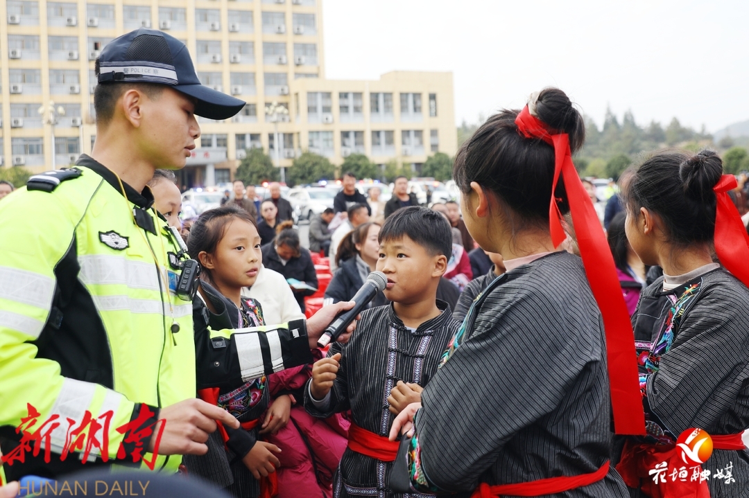 随后,由湘西州各县市带来诸多有关交通安全精彩表演,快板说唱《人人讲安全》,用通俗易懂、喜闻乐见的形式让交通安全意识入脑入心;情景剧《追悔莫“急”》,演绎了超速行驶、闯红灯等违法带来的危害情景,为大家带来了一场精彩的交通安全文化大餐。在交通安全知识有奖问答互动环节中,现场提问交通安全法律法规安全知识,提醒广大交通参与者自觉遵守法律法规,呼吁大家养成守法出行的习惯。
