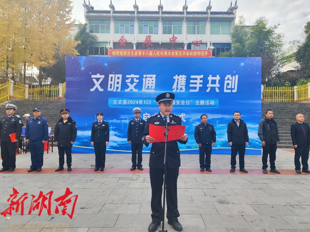 新湖南客户端12月2日讯(见习记者 杨文馨)12月2日上午,湘西土家族苗族自治州古丈县在会展中心组织举行2024年122“全国交通安全日”主题活动启动仪式,古丈县公安局党委副书记、政委邓振军出席本次活动。