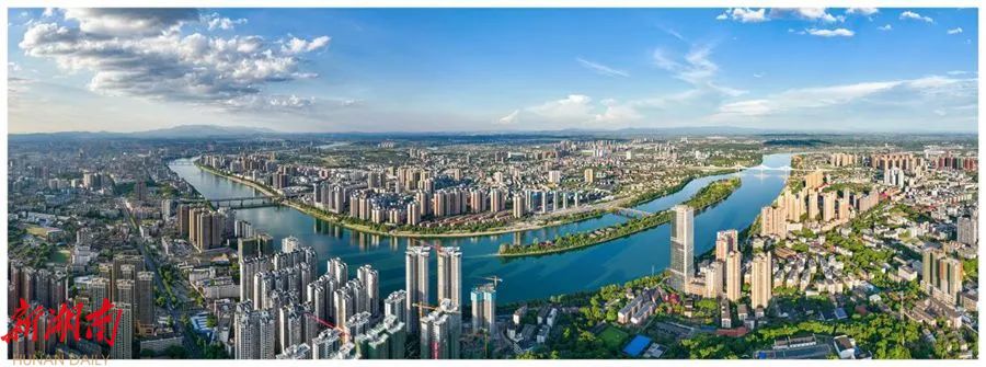 蓝天白云映衬,湘江穿城而过的大美衡阳(资料图)。新华网发(彭斌 摄)