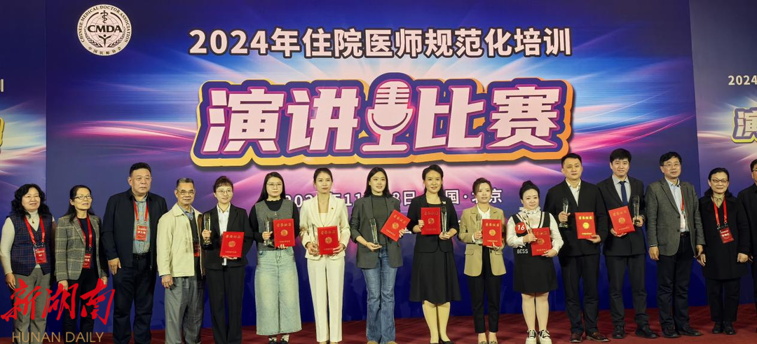 同时,为进一步推动住院医师规范化培训工作,展示住院医师和指导医师的风采,中国医师协会还举办了“2024年住院医师规范化培训演讲比赛”。南华医院对此次竞赛高度重视,教学科研部及住培办精心准备,反复打磨演讲稿,全力支持参赛选手。经过全国网络投票、专家评审及总决赛的激烈角逐,医院指导医师邓秋林最终荣获指导老师组“三等奖”,是湖南省住培指导老师中唯一获奖的个人。