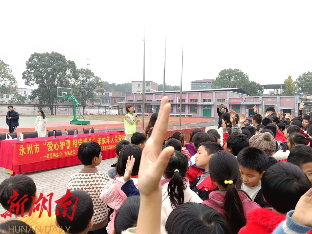 新湖南客户端12月3日讯(通讯员 周珍)12月3日,由永州市慈善总会、永州市民政局、永州市未成年人保护中心主办,永州市慈善志愿者协会协办的“永州市关爱保护未成年人‘五防’安全教育”活动在东安县端桥铺中心小学举行。