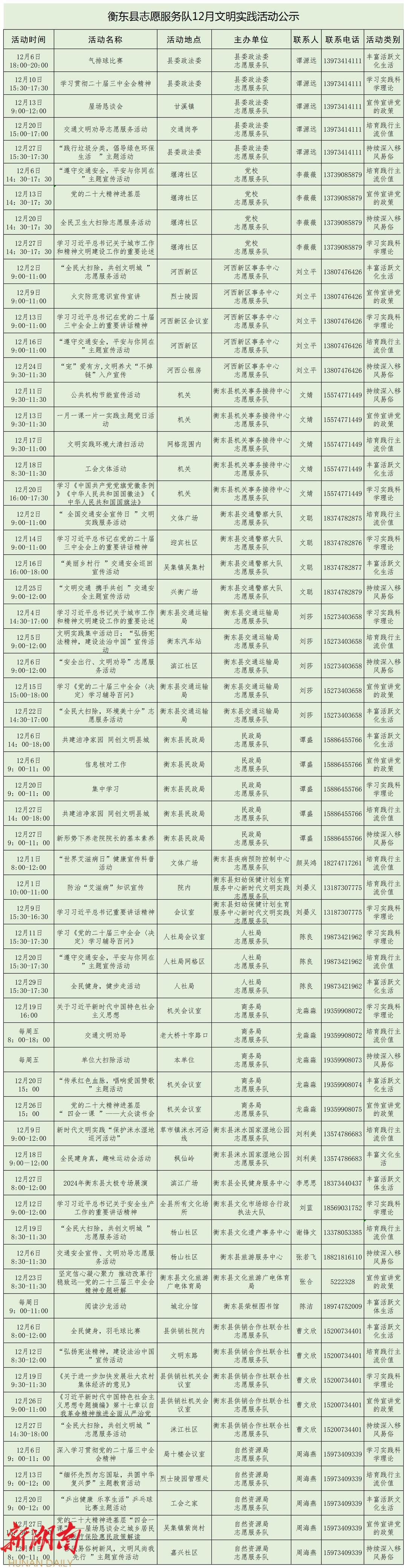 【新时代文明实践在衡东】衡东县2024年12月份新时代文明实践活动清单来了!