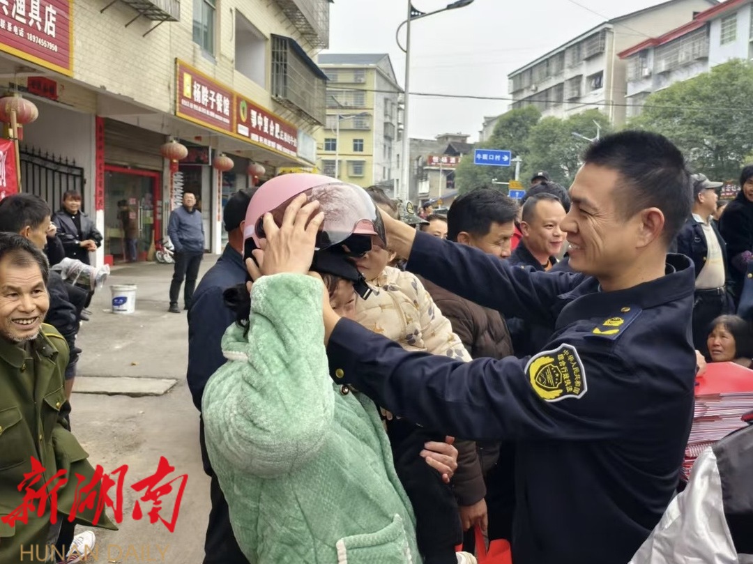 为增进互动,活动现场还设置了“有奖问答”环节,让群众以互动体验的形式参与活动,寓教于乐,在共享欢乐氛围的同时,做到全民参与、全民关注交通安全,切实增强交通安全意识。“我刚才回答了一个问题,他问的是儿童要满多少岁才能坐副驾,因为我家的小孩坐车,我们都不让她坐副驾的,通过答题我明白了要年满12岁的儿童才能坐副驾 。”新建镇居民杨松青拿着答题赢得的头盔高兴地说。