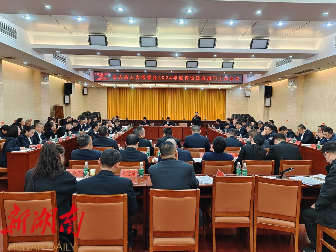 新湖南客户端12月4日讯(见习记者 王良昊) 开展工作评议是人大对政府及其部门工作的一种有效监督形式。12月3日,湘西土家族苗族自治州古丈县人大常委会召开2024年度评议政府部门工作会议,对县自然资源局、县市场监督管理局、县教育和体育局、县卫生健康局和县财政局5个政府组成部门进行评议。县人大常委会副主任胡浩宗主持会议,县人大常委会主任曾传文出席会议并发表讲话,县人大常委会副主任向霞玲、祁光怀、向青山、唐勇出席会议。县领导聂仁军、彭波、刘学书、宋友富、鲁明炎、姚祖军、李智伟、龙浩列席会议,县人大常委会其他组成人员、县政府部门行政负责人及被评议部门全体班子成员、乡镇人大主席、工作评议调研组成员参加会议。