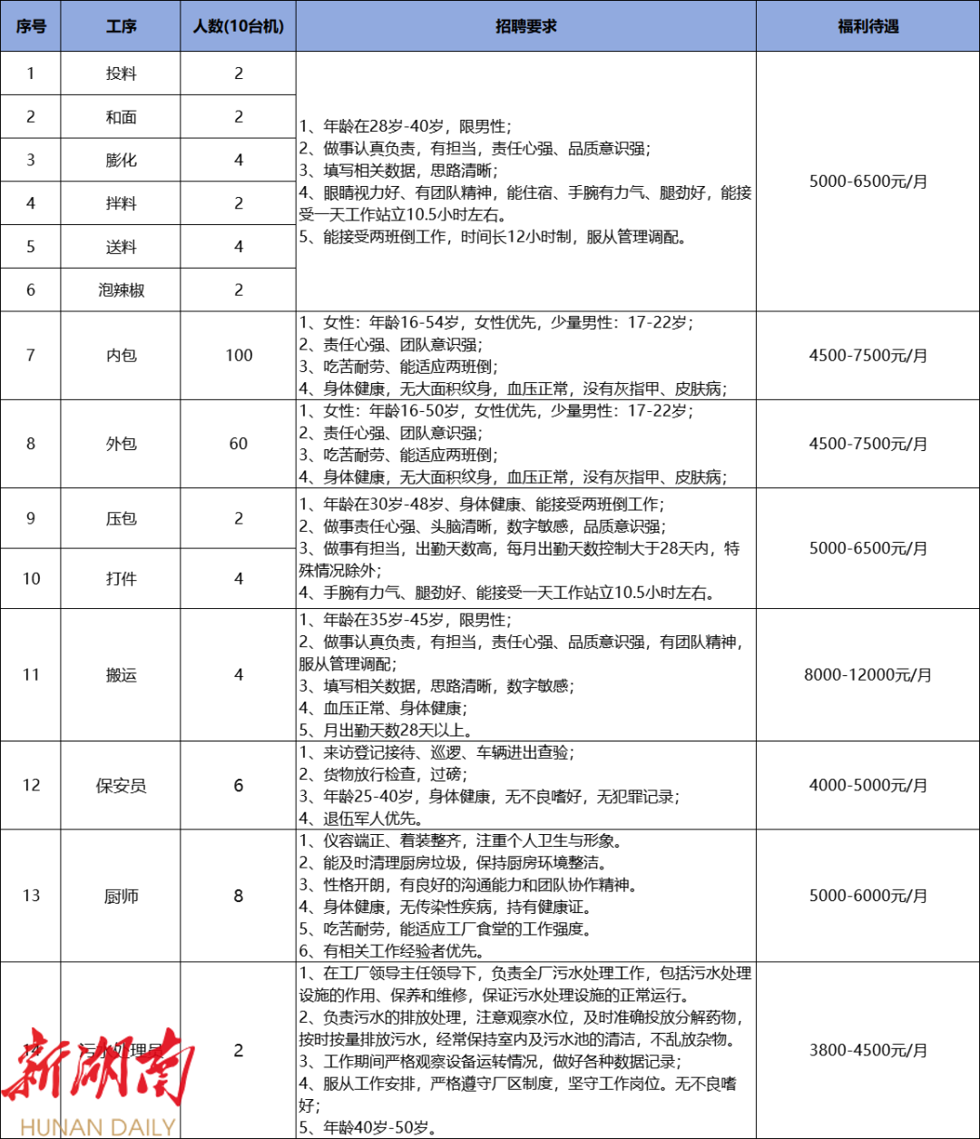 ,所有岗位均为直招,新员工将就职于麻辣王子年产25万吨正宗辣条产业园,岗位薪资范围为每月4500—12000元
