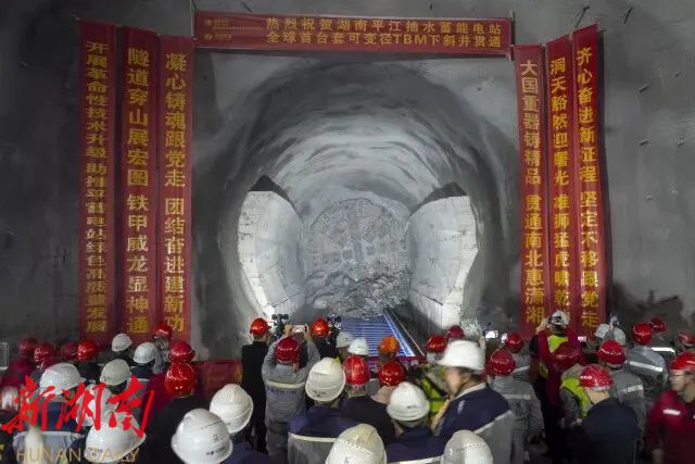 ▲ 11月22日,平江抽水蓄能电站引水下斜井精准贯通。
