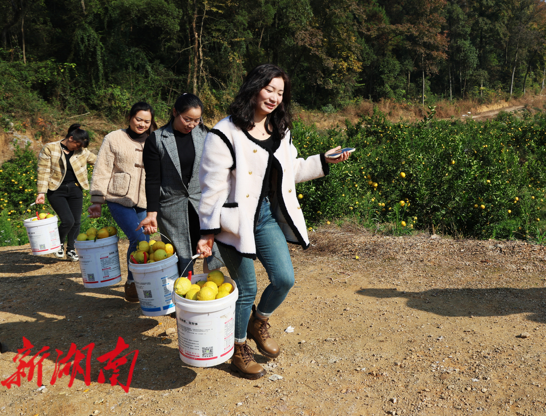 12月2日,走进新邵县卓硕种养农民合作社的黄金贡柚种植基地,阵阵沁人心脾的柚香扑面而来,一个个硕大饱满、色泽金黄的柚子在阳光下显得格外诱人。果农们手持剪刀,提着果桶,穿梭在柚林间忙着采摘、分拣、装筐等,呈现出一幅“柚”香“柚”甜的丰收图景。