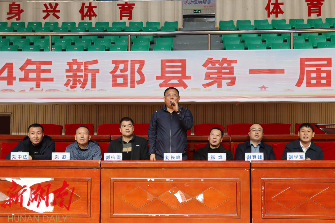 新新邵客户端12月3日讯 12月1日,由县文化旅游广电体育局指导、县全民健身服务中心主办的“全民健身”2024年新邵县第一届(新BA)40岁+篮球赛在县体育馆开幕。县人大常委会党组书记、主任刘长峰出席并宣布开幕。