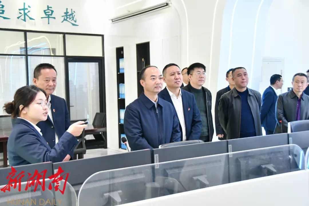 在国网新邵供电公司指挥中心,谢小军一行详细了解全县电网运行、项目建设、安全生产等情况,并召开座谈会,听取国网新邵供电公司有关情况及冬季电力保供工作汇报。