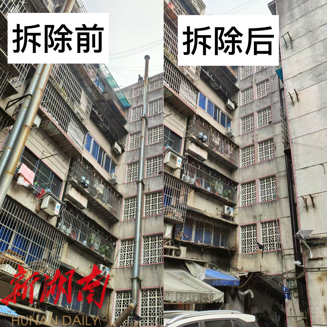 开福区德雅路社区:拆除废旧烟囱,消除安全隐患