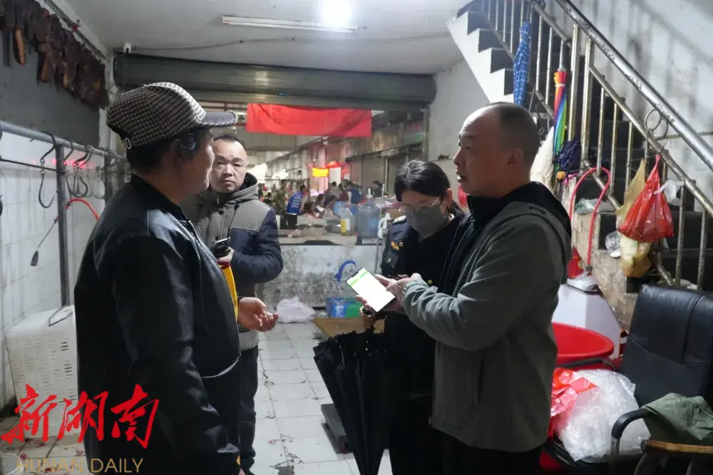 “老板,这些猪肉都是从什么渠道进货的?”“存放肉制品的环境必须时常清理,确保符合卫生标准……”检查过程中,执法人员对祝丰农贸市场中各类肉制品经营者的进销货台账,是否存在采购来源不明的肉类及肉制品,生鲜肉品是否持有动物检疫合格证、肉品品质检验合格证等情况进行重点检查,并随机在各肉制品摊位选取了不同品种的肉类进行抽样检测;同时,向经营者宣传食品安全相关知识,督促指导他们落实好食品安全主体责任,严防无检验、无检疫合格证明、来历不明的肉类食品流入市场、流向餐桌,确保人民群众吃上“放心肉”。