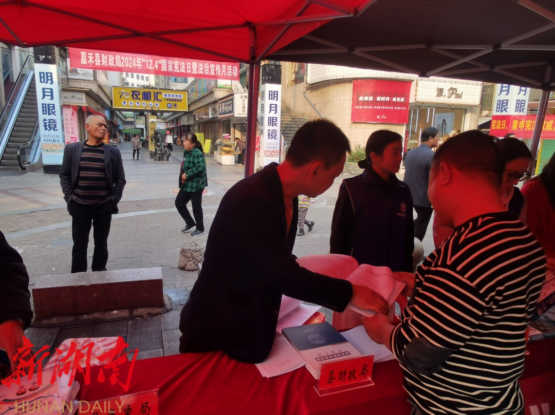 为深入贯彻落实党的二十大和二十届三中全会精神,更好践行习近平法治思想。12月4日,嘉禾县财政局组织干部职工前往步行街,开展2024年“12.4”国家宪法日暨法治宣传月活动,弘扬法治精神,维护宪法权威。