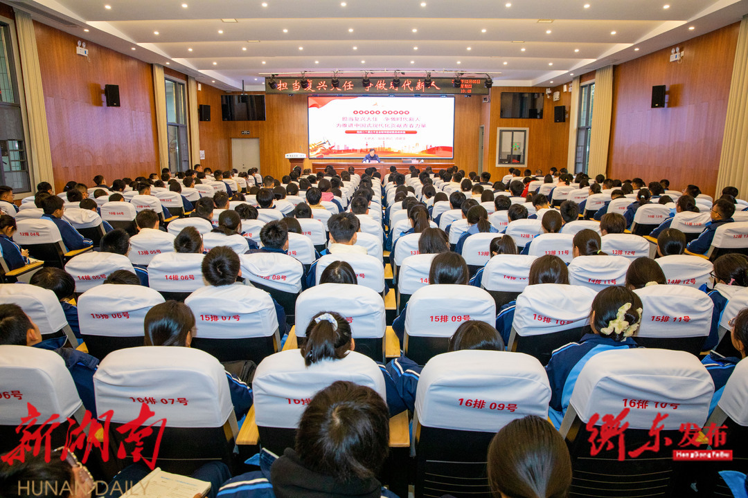 谭建华寄语同学们,一代人有一代人的使命,一代人有一代人的担当。要信念坚定,做理想远大的新时代青年;修身立德,做向上向善的新时代青年;勤学善行,做本领过硬的新时代青年;强心健魄,做身心健康的新时代青年;胸怀天下,做心有大爱的新时代青年。他指出,胸怀天下、心有大爱是党和国家对青年一代的殷切期望。希望同学们把“大爱”落实在具体行动上,体现在生活细节中,从爱自己的家乡做起,像爱护眼睛一样爱护自己的城市。更希望同学们成长成才,在今后走出衡东,宣传自己的城市,为自己的家乡赢得更多的荣光。