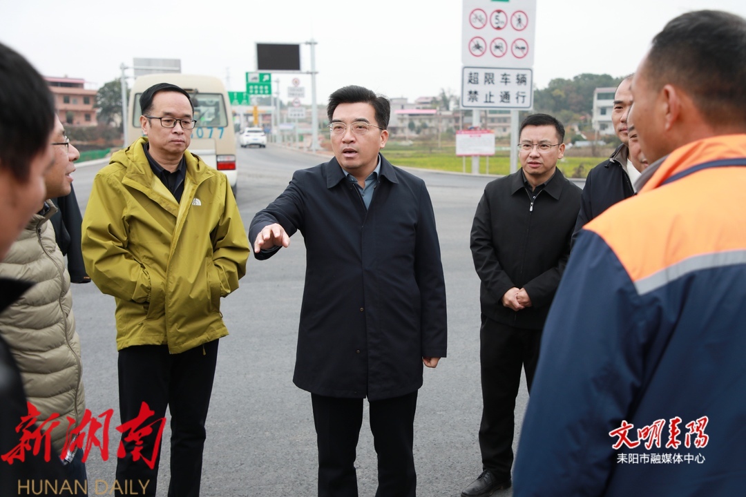 12月5日上午,衡阳市委副书记、耒阳市委书记赖馨正调研竹大公路、茶常高速耒阳段、G107绕城公路等重点交通项目建设工作,看望一线施工人员和党员干部群众。他强调,要深入学习贯彻党的二十届三中全会精神和习近平总书记关于交通强国的重要论述精神,扎实开展“两个攻坚年行动”,保持一竿子插到底的作风和抓铁有痕的韧劲,竭力推动重点交通项目早日建成通车,不断增强人民群众的获得感幸福感安全感。