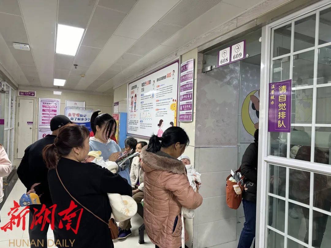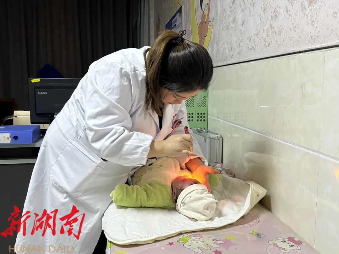“您好,请到这边登记,然后按照护士指引有序排队检查。”12月2日,在永定区妇幼保健院新生儿听力筛查室门口,不少家属抱着刚出生不久的宝宝等候检查,医护人员耐心地为他们办理新生儿疾病筛查相关手续。